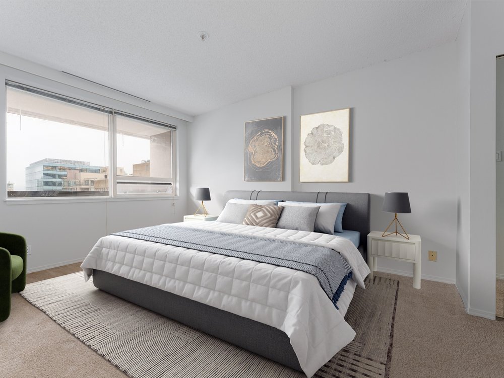 Welcome to London Place, a centrally located DT Vancouver gem built for the urban lifestyle. This very rare 2-bedroom home offers a smart, functional floorplan, fresh paint, and in-suite laundry. Enjoy walkable access to all that Downtown has to offer, from top restaurants and shopping to transit and entertainment. The solid, well-managed building features four elevators, so convenience is never compromised. Residents enjoy fantastic amenities, including an air-conditioned gym, rooftop hot tub, and a games room with pool table, TV, and library. Incl 1 parking, 1 storage locker. Priced below BC Assmnt, this is exceptional value in a prime location. Open House Saturday & Sunday, 1-3 PM.